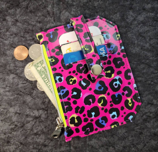 Hot pink cheetah pocket pal/ minimalist wallet/ card holder/ coin pouch / glow in the dark zipRegular price $18.00 USDRegular priceUnit price per-