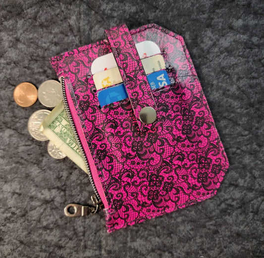 Pink and black lace // pocket pal/ minimalist wallet/ card holder/ coin pouchRegular price $18.00 USDRegular priceUnit price per-