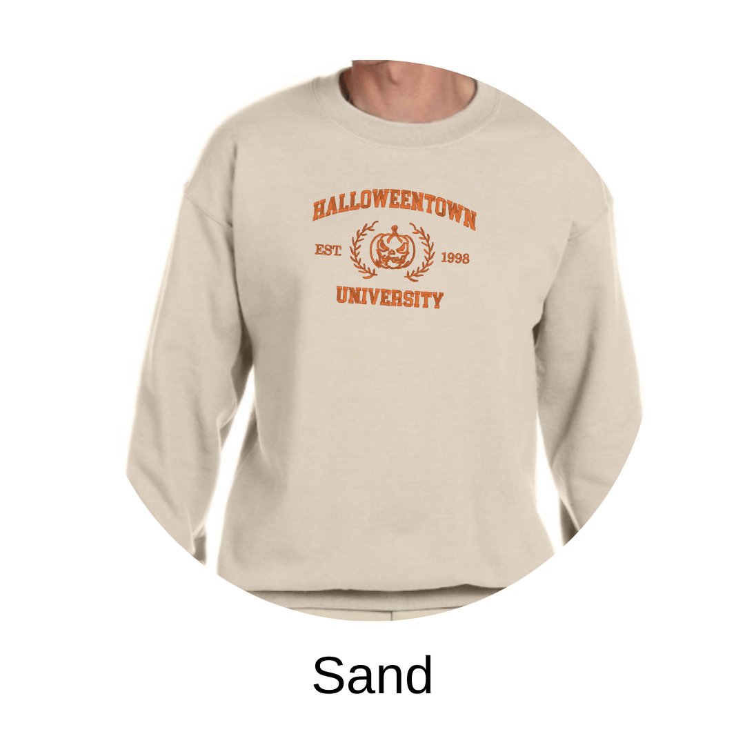 "Halloween University" embroidered crewneck sweatshirts are ready to be part of your Fall season wardrobe!