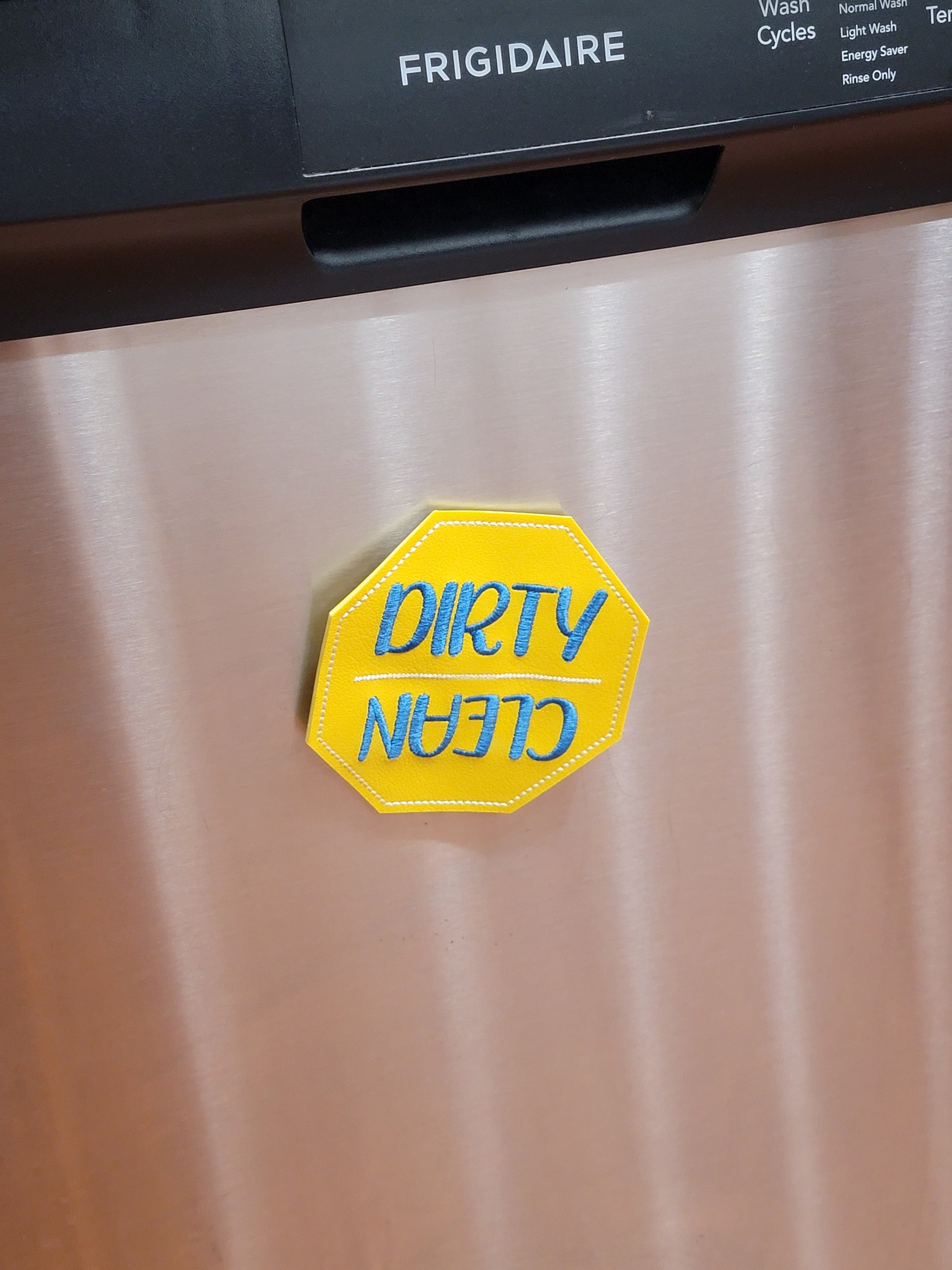 Attaches to most dishwashers with a strong magnet and easy to spin around for the clean or dirty side.