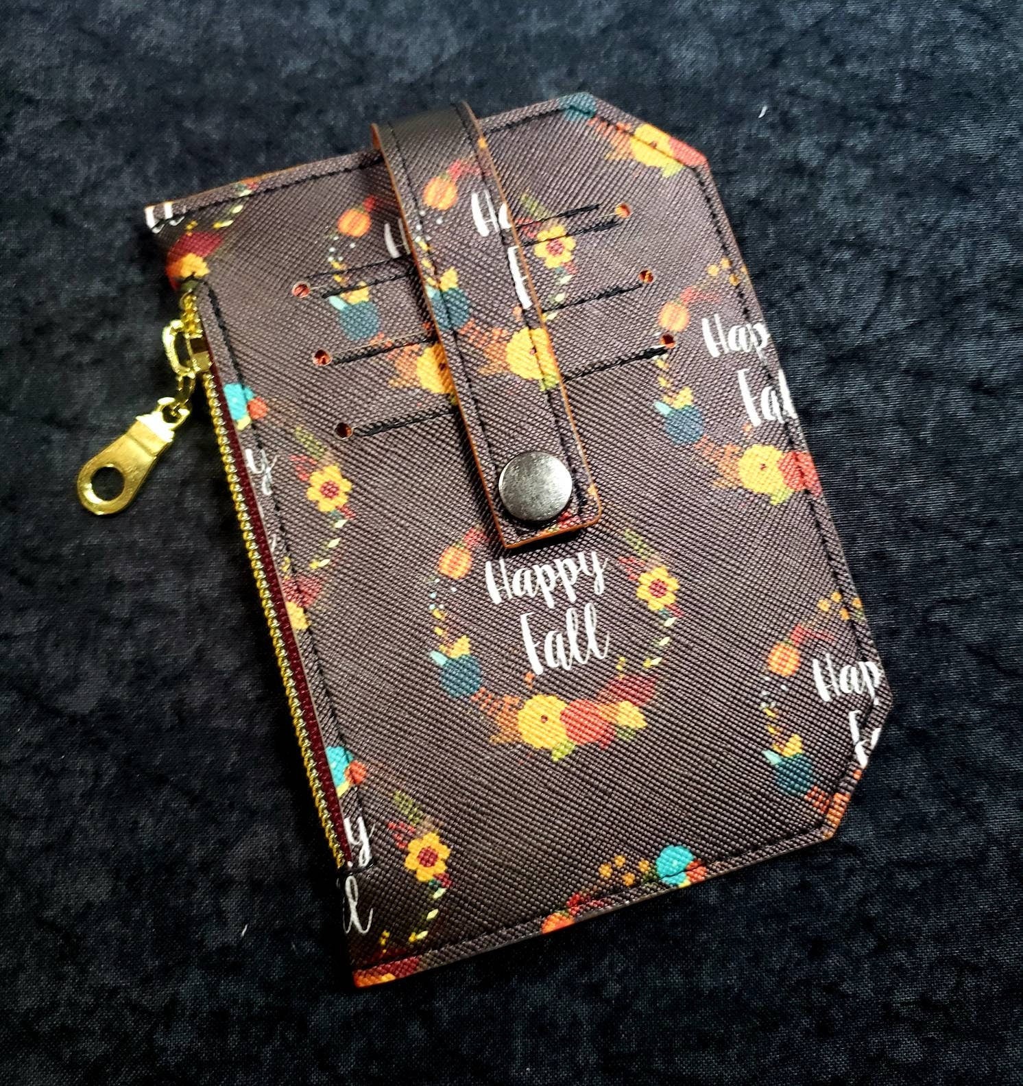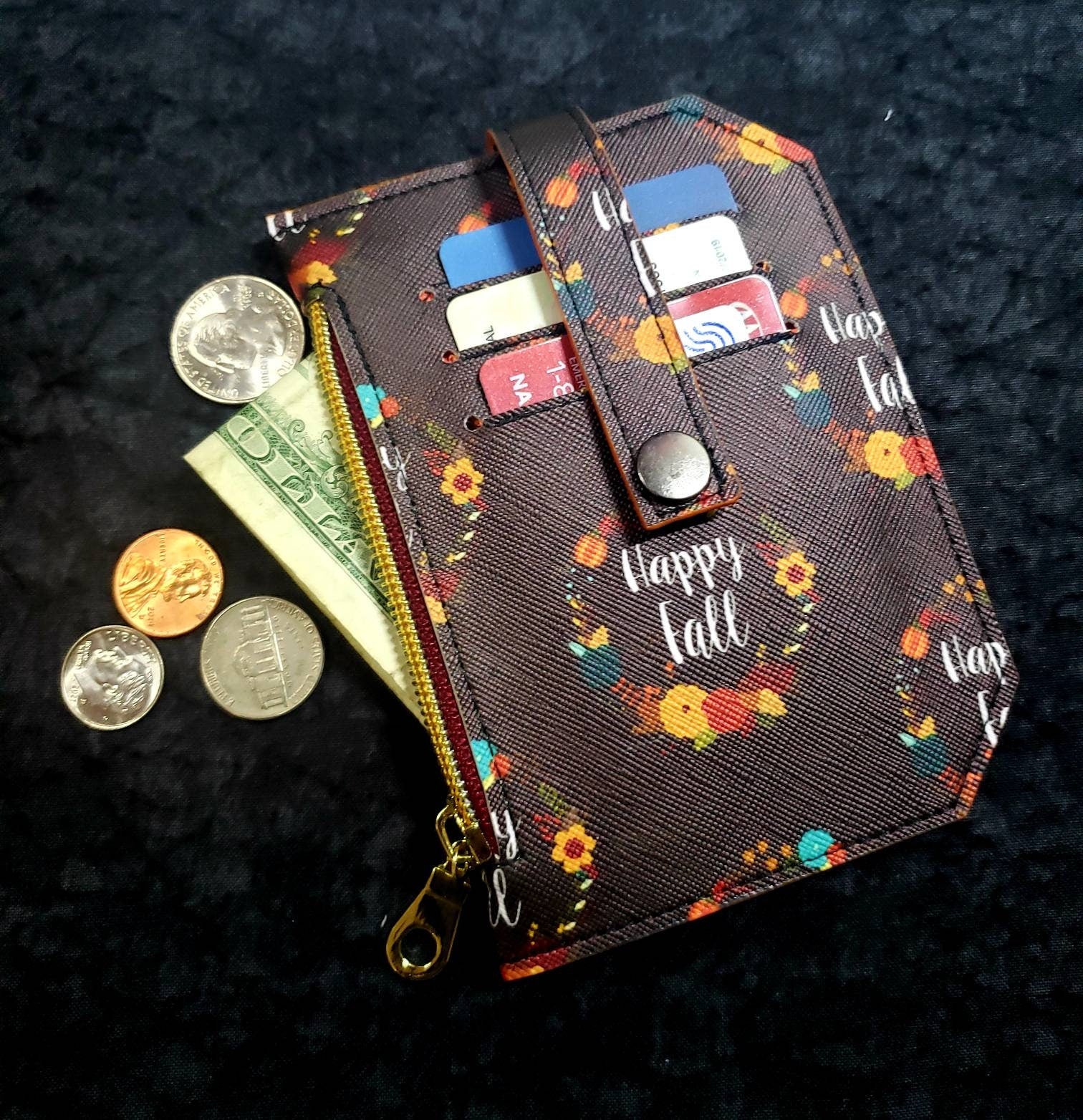 Happy Fall// pocket pal/ minimalist wallet/ card holder/ coin pouch