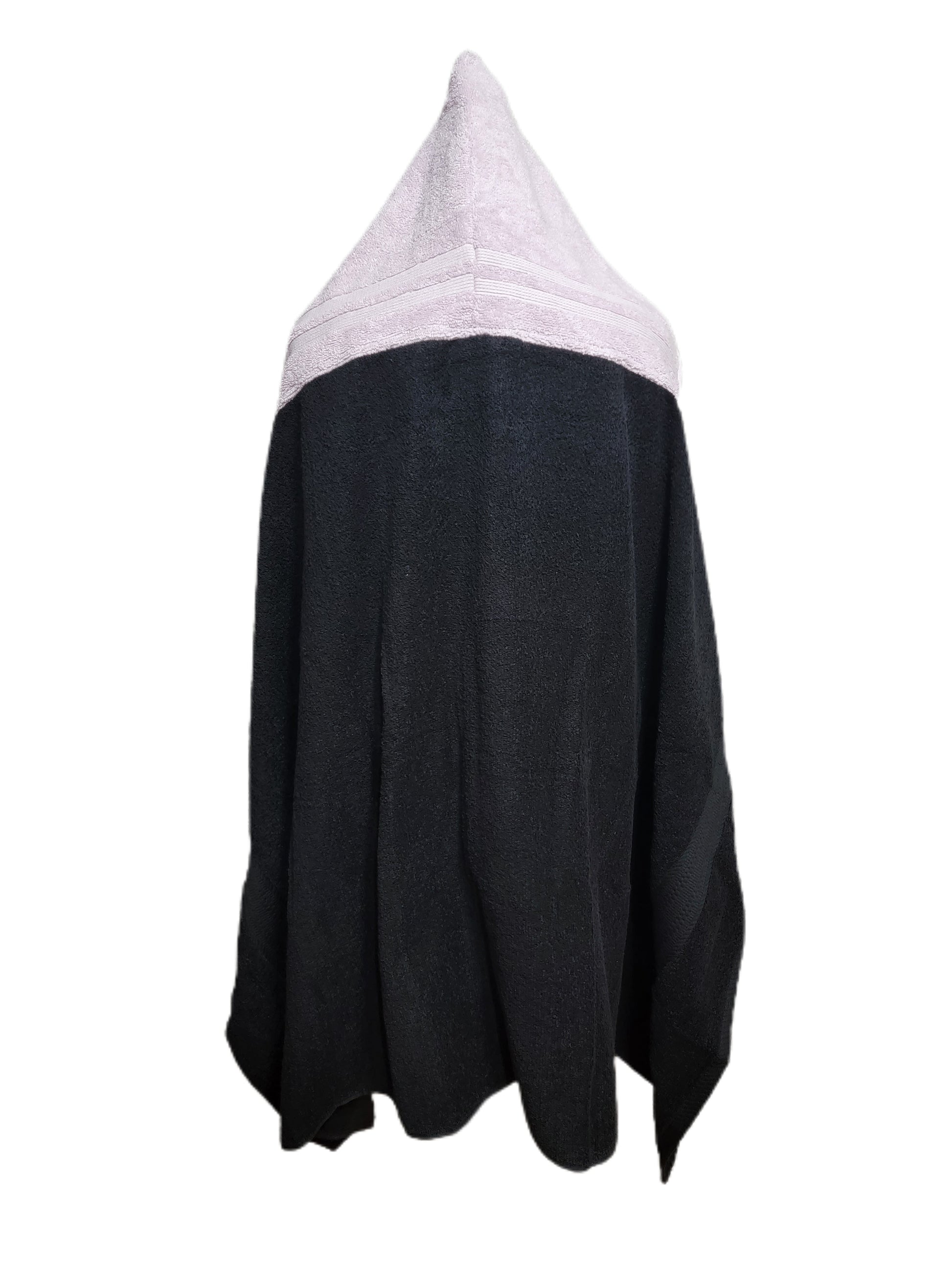 Each towel has a hood attached to adult size towel with a fun character embroidered on the hood. Washable and easy to fold or hang on the door.