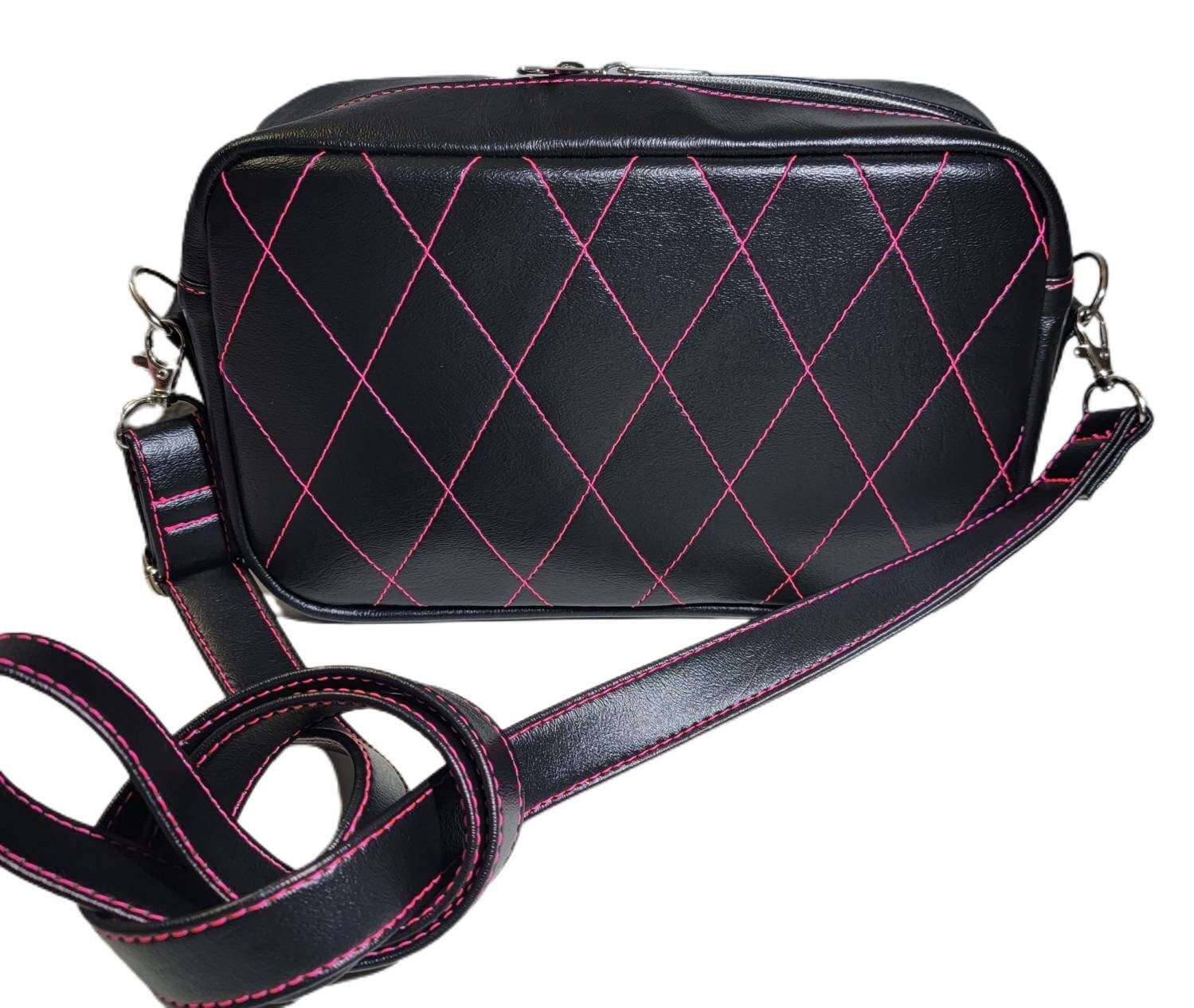 Neon pink and black/ floral/ diamond quilt/ boxy bag/ card holder/ silver hardware