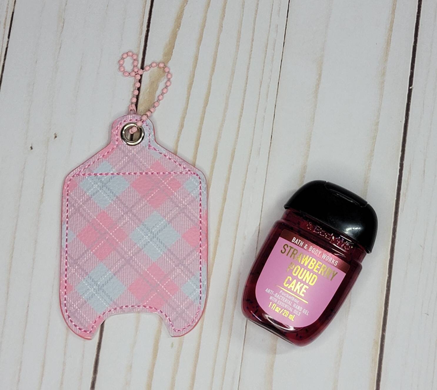 Pink and blue plaid/ Hand sanitizer holder/ keychain