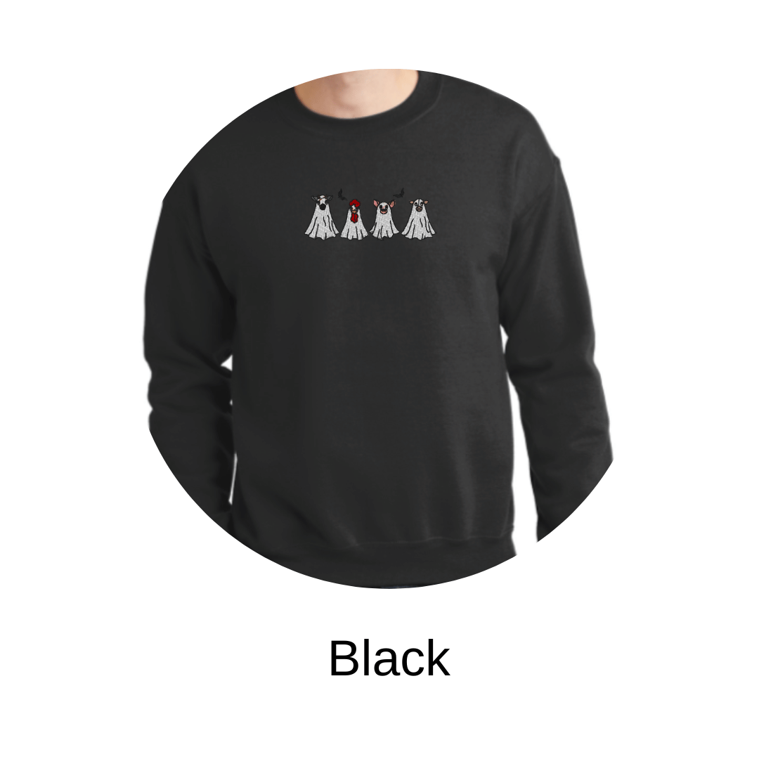"Spooky farm friends" embroidered crewneck sweatshirts are ready to be part of your Fall season wardrobe!