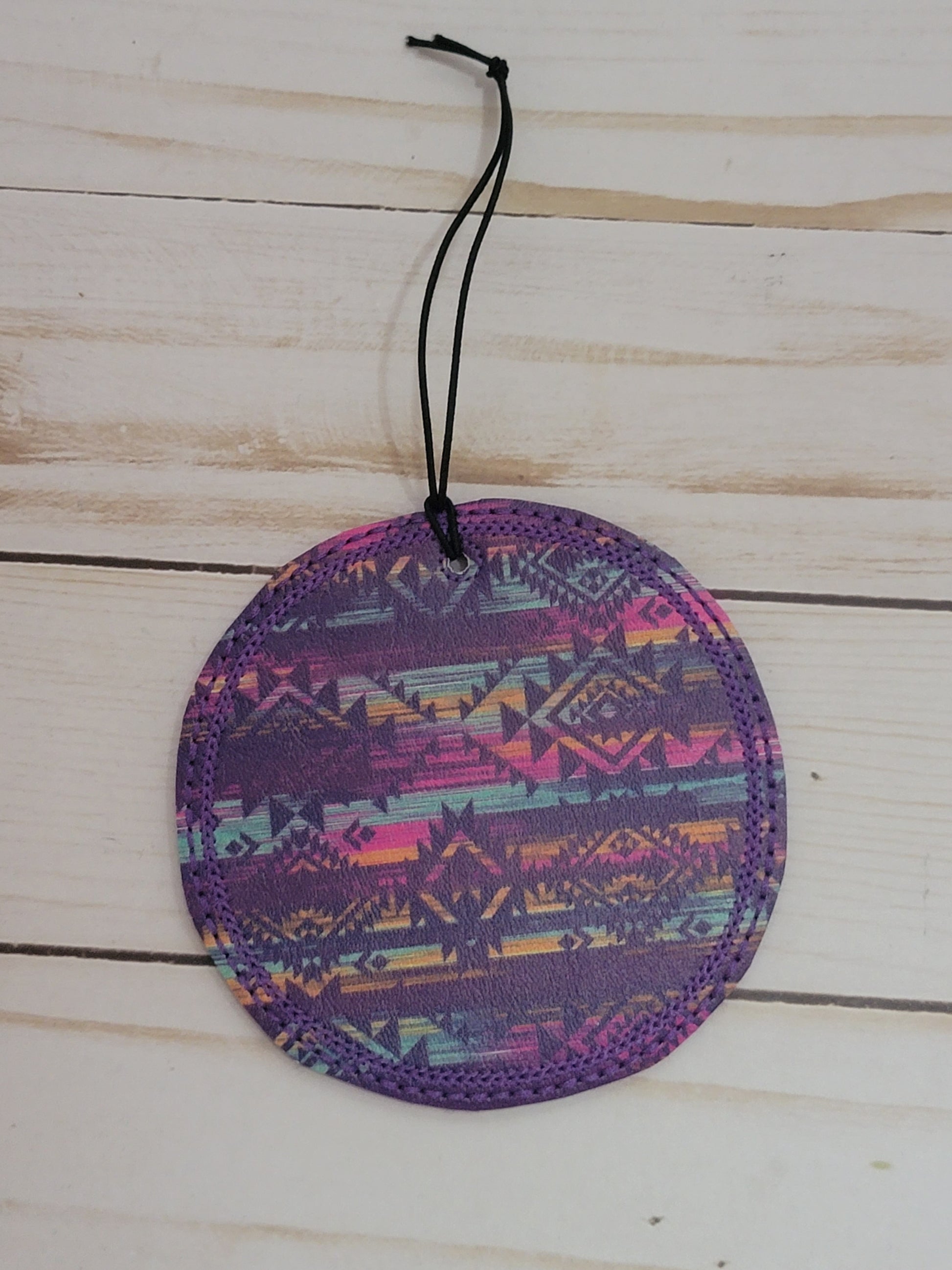Car freshies have a marine vinyl front and a felt backing as well as an elastic string to hang.